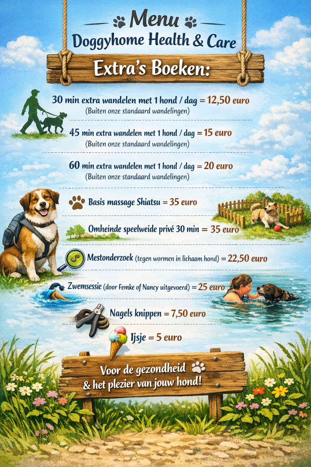 Indien u een reservatie wenst voor een periode dient 50% direct te betaald worden via overschrijving om je periode bij ons te registreren. Na ontvangst pas van 50% staat je reservatie vast bij ons. De andere 50% dient een week VOOR aanvang ook overgeschreven worden. Er wordt geen betalingen aanvaard in de zaak zelf!